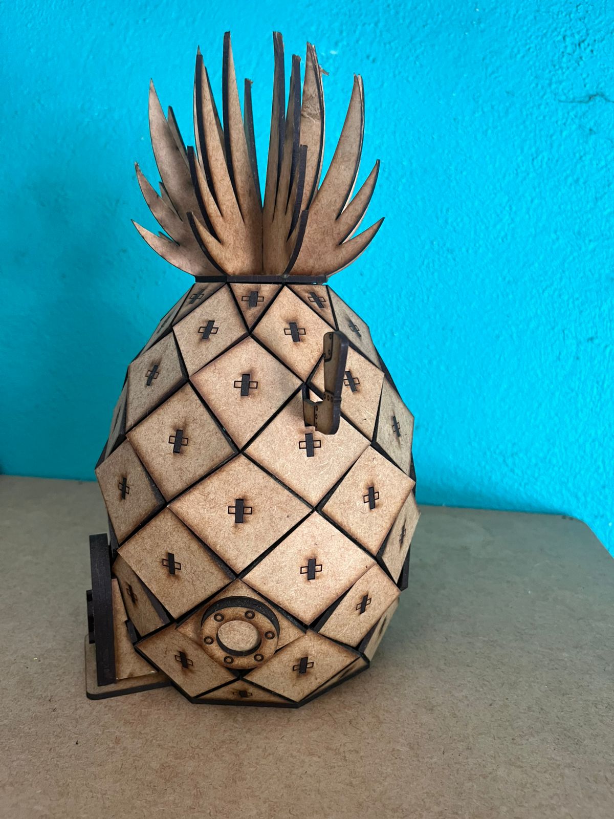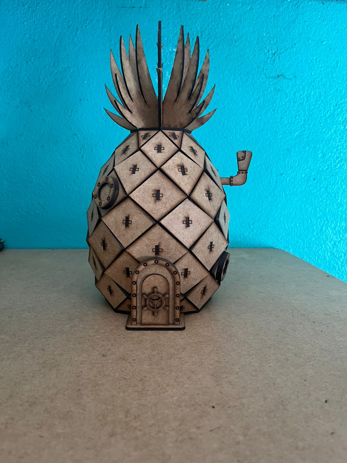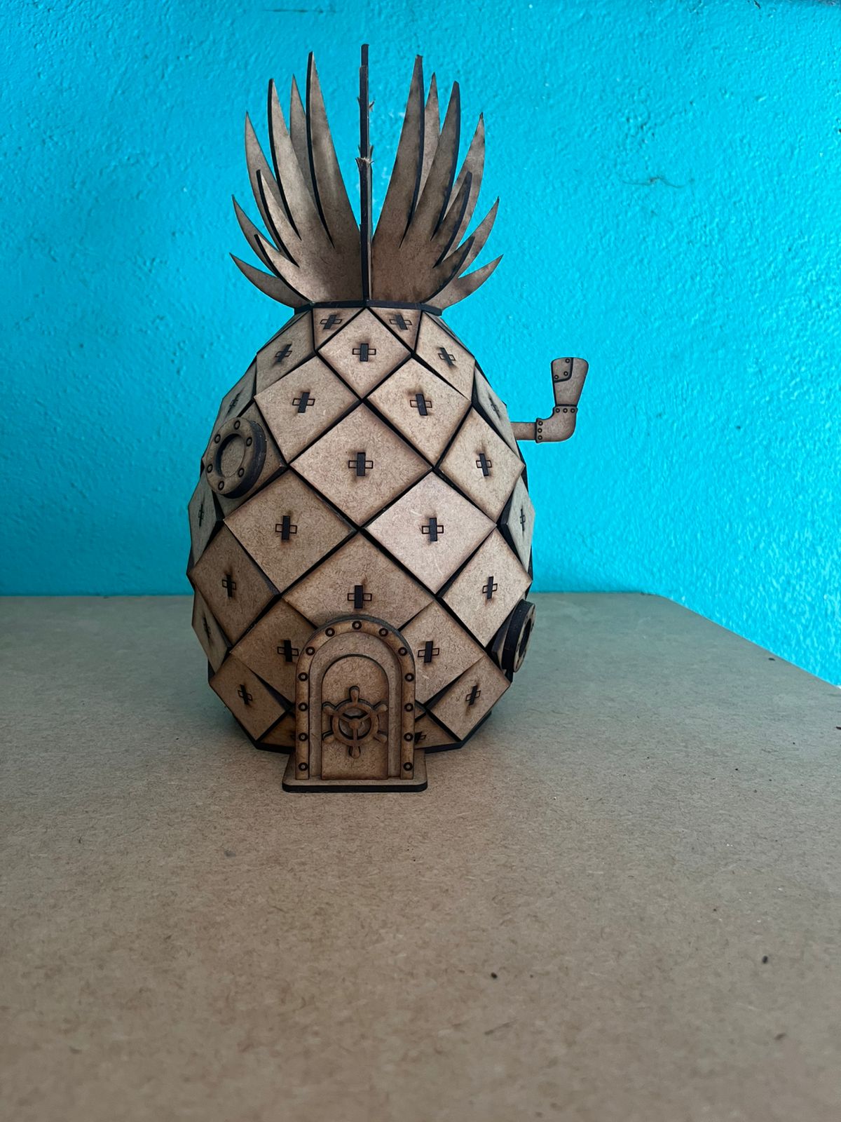 Esta encantadora figura de madera recrea con precisión la icónica piña de la casa de Bob Esponja, con detalles grabados con láser que le aportan un toque único y artesanal. Perfecta como pieza decorativa para fanáticos de este personaje o como un regalo original, esta creación captura la diversión y creatividad del mundo submarino.